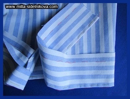 Манжеты на завязкахАвтор Милла Сидельникова.Особенно эффектно смотрится на ткани в полоску.