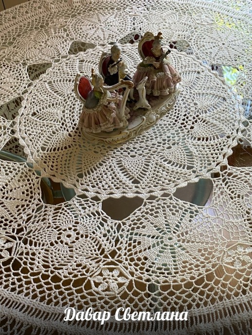 Шикарная скатерть "Мое вдохновение" вяжется долго, но ее красота того стоит.