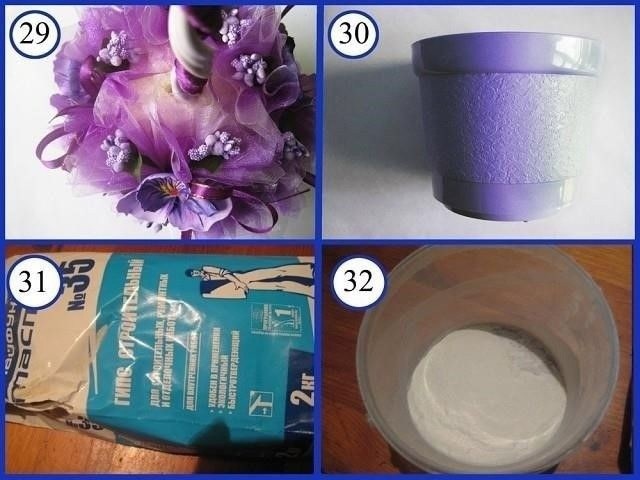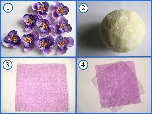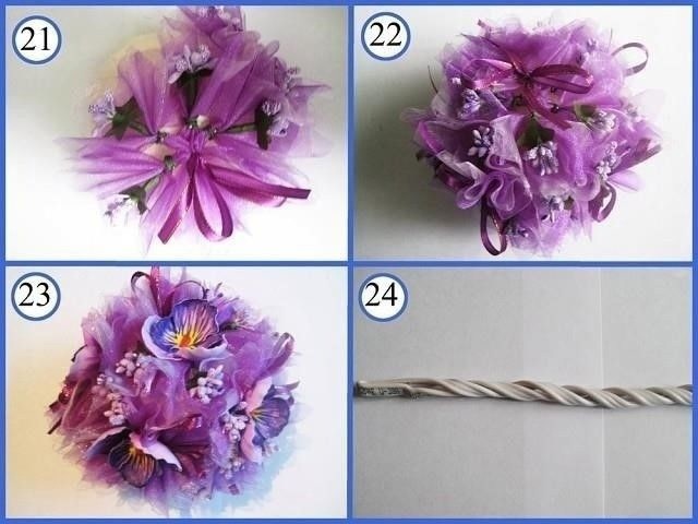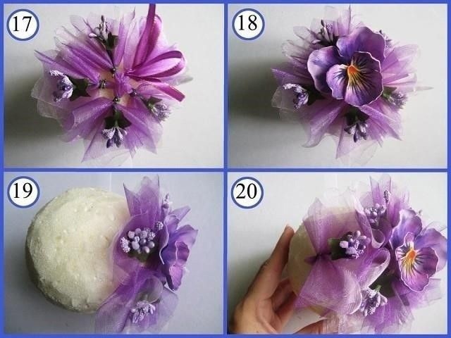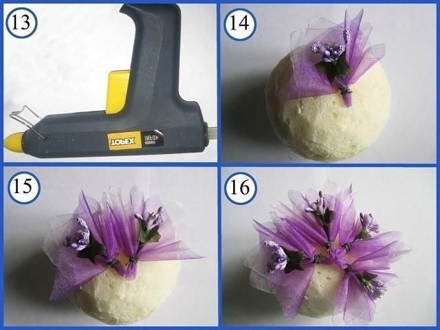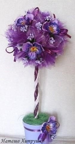 Топиарий с фиолетовыми цветами из фоамирана и с органзой вы можете создать собственными руками.