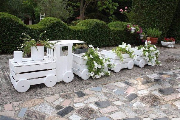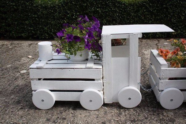 Паровозик для двора или дачи из старых ящиков можно сделать своими руками.