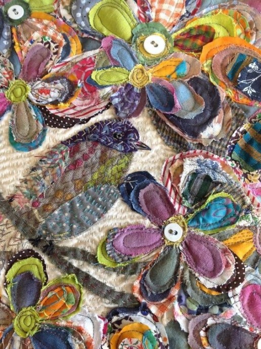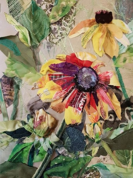 Цветочная аппликация в сочетании с вышивкой
