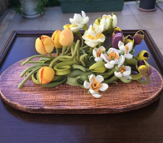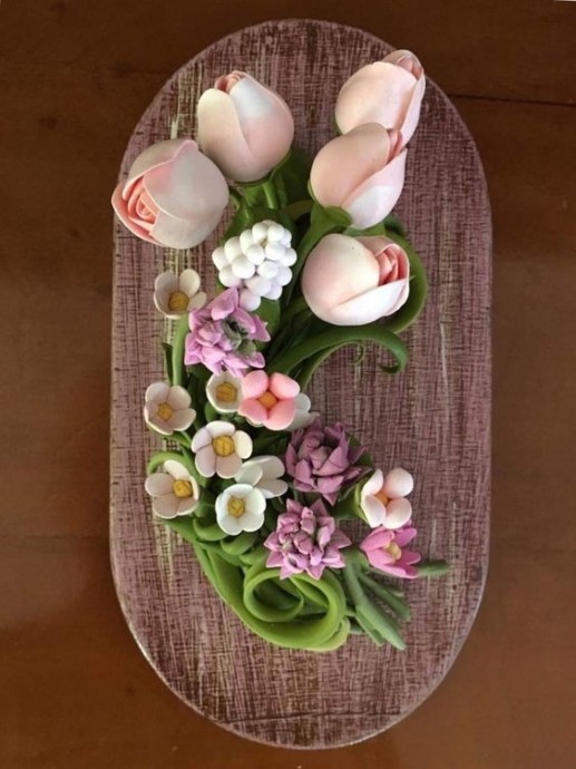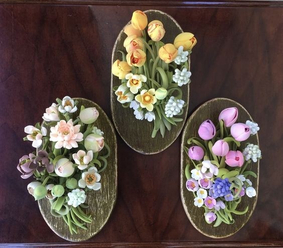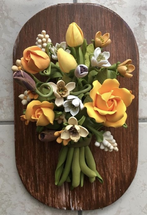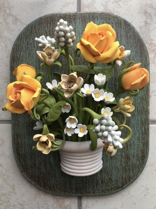 Цветочные панно из полимерной глины сложно отличить от живых цветов.