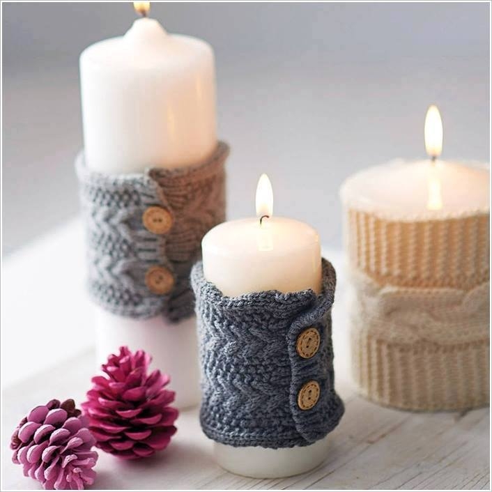 Свечу можно поместить в стакан и на него одеть на него связанный декор.