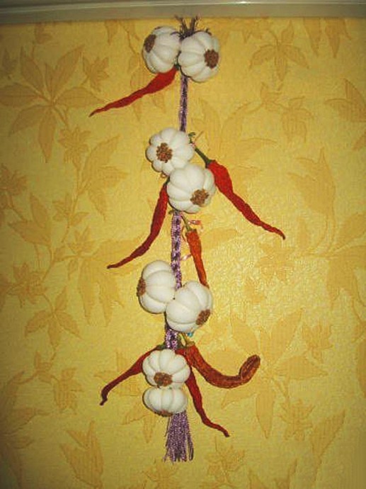 Пока настоящий чеснок подрастает на грядке, сделайте декоративный из капрона.