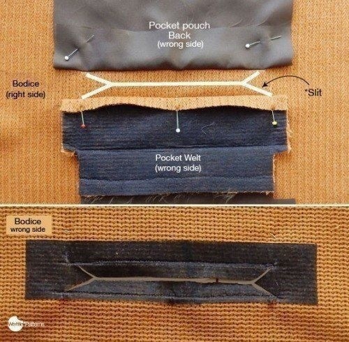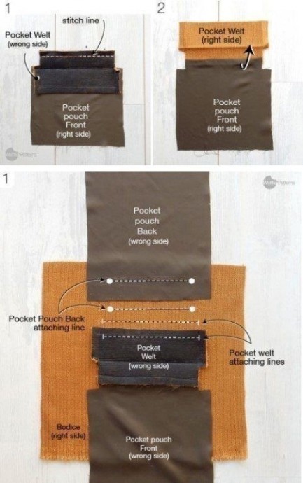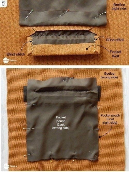 Интересный способ выполнения кармана с настрочной листочкой