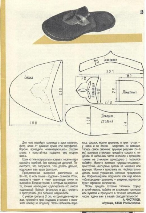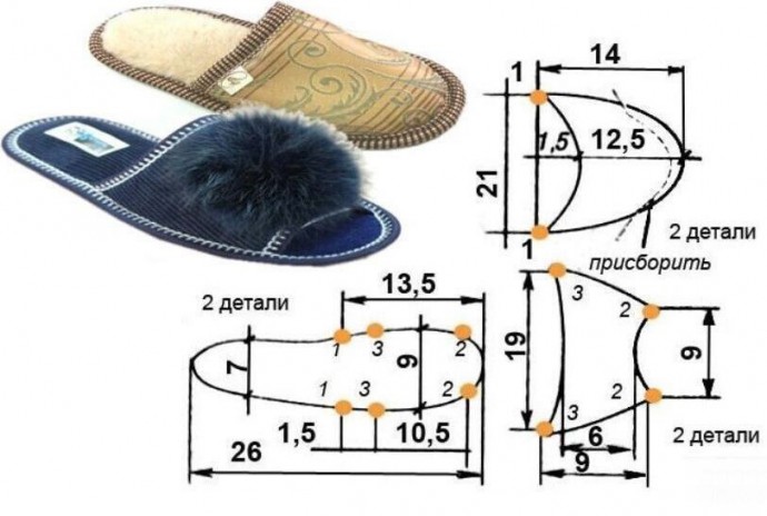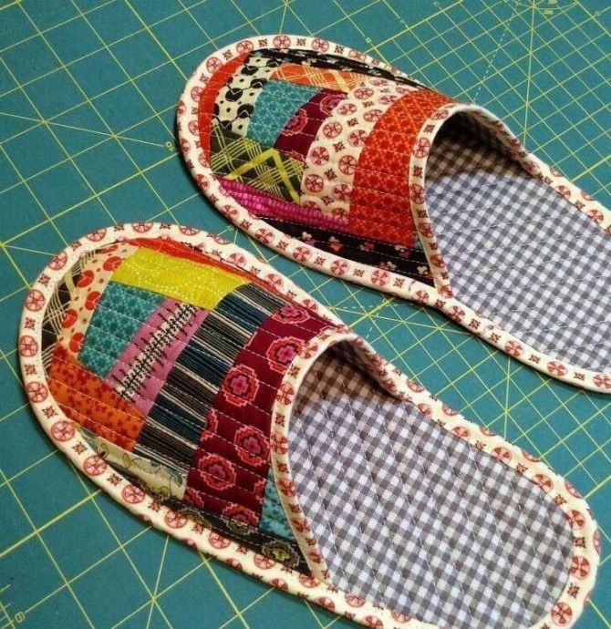 Хорошие тапочки, хорошие выкройки. Главное — это подобрать такой материал на подметку, чтобы потом не скользить на плитках пола, где они есть в доме. Кстати, на ламинате или лакированном полу тоже можно хорошо растянуться.