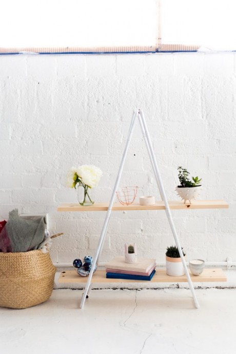 Мини-стеллаж из труб удобен и бюджетен одновременно.