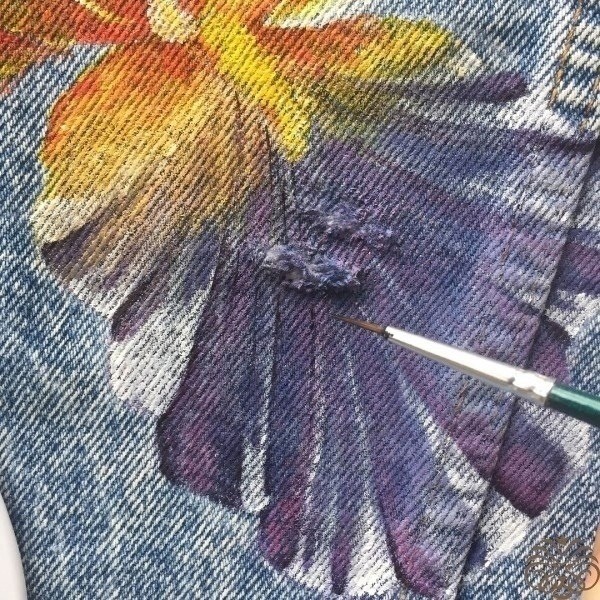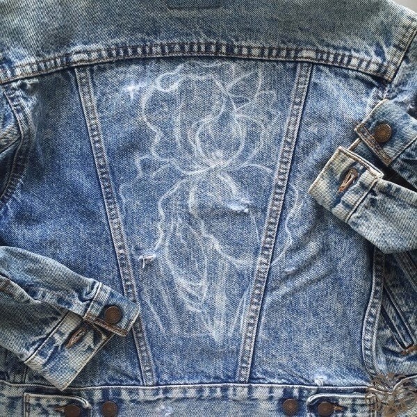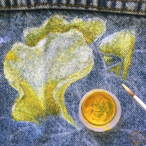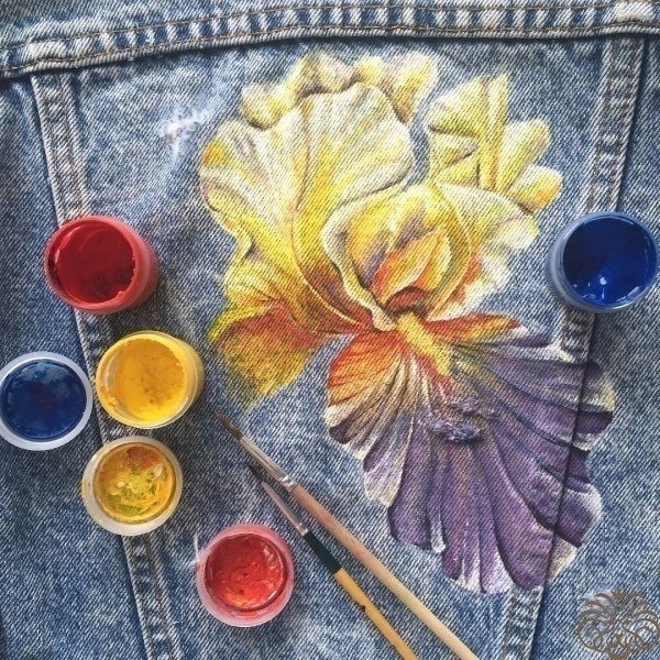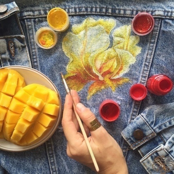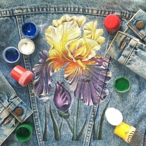 Если купить дешёвую джинсовую куртку и расписать красками для ткани, вещь получится эксклюзивной и станет выглядеть очень дорого.