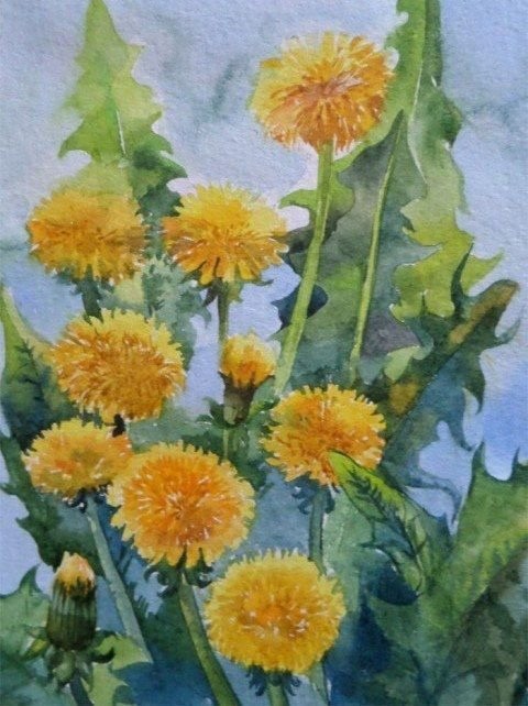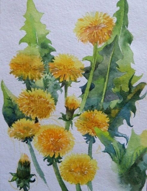 Урок рисования акварелью: одуванчики