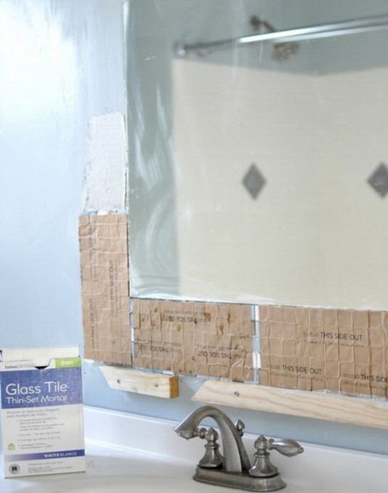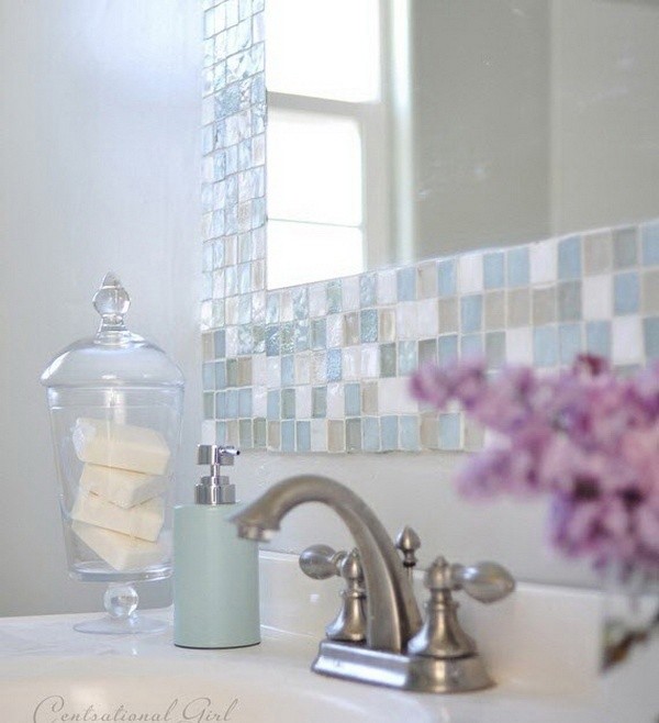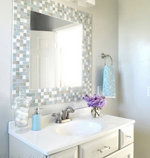Оттенки мозаики вокруг зеркала стоит подбирать в той же цветовой гамме, в которой выдержана вся комната.