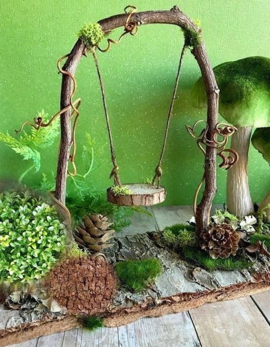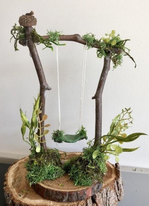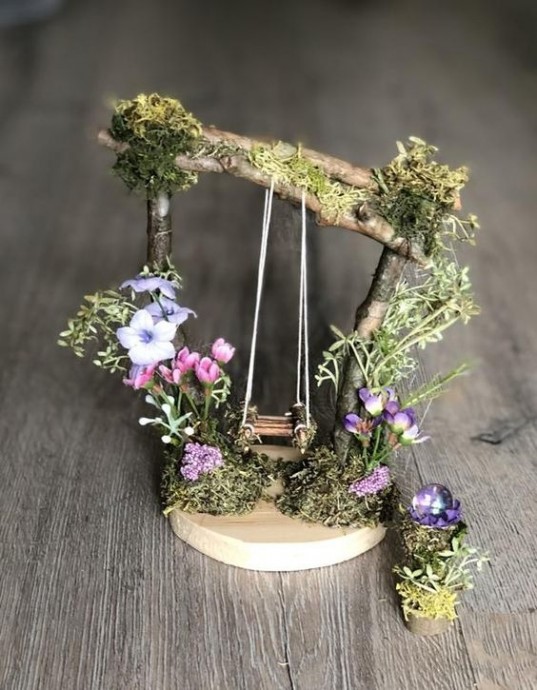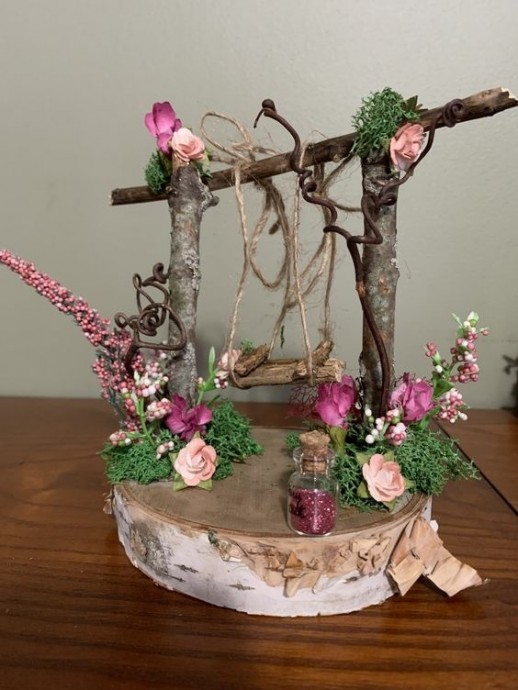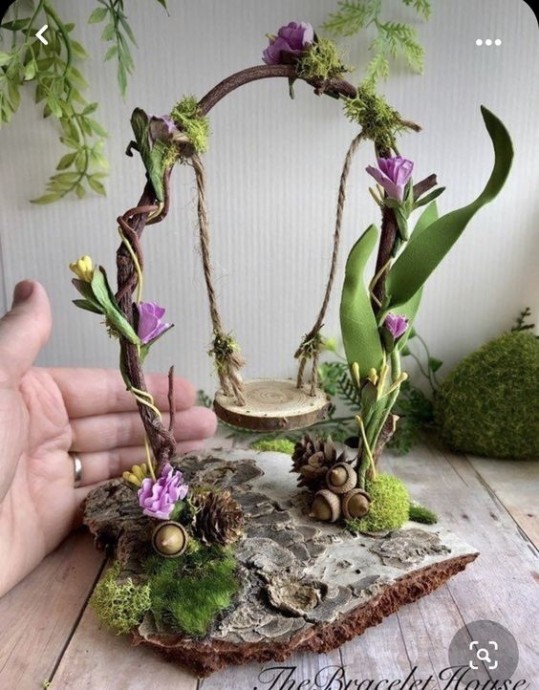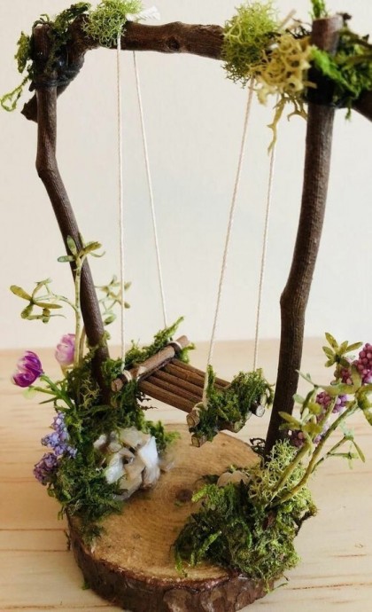 Декоративные качели можно украсить, цветами, животными и всем, что подскажет вам ваша фантазия.