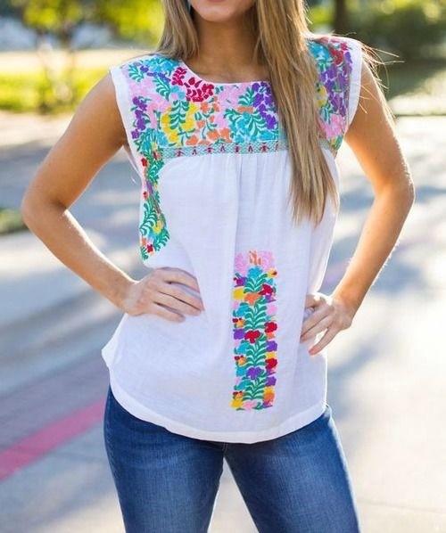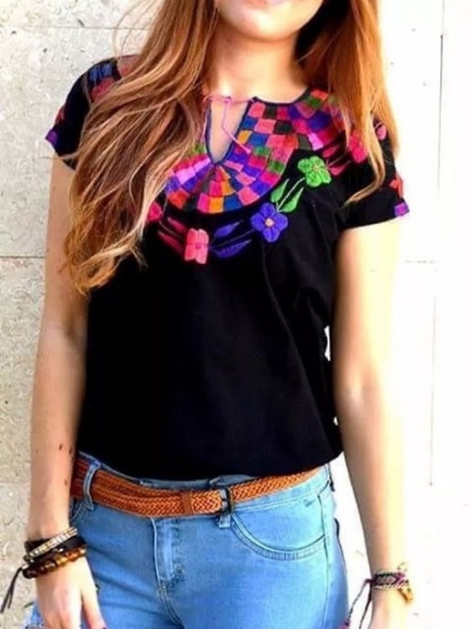 Простые летние блузы с яркой вышивкой привлекают внимание сразу.