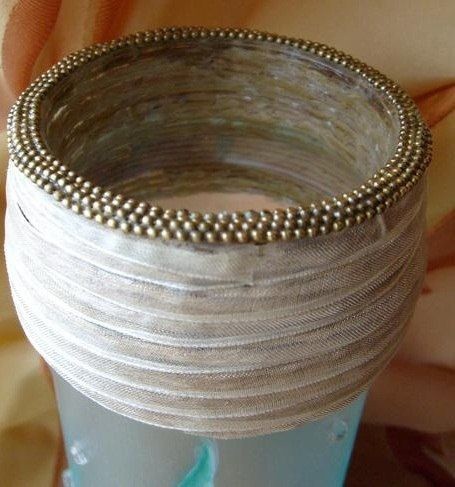 6 Верхняя чать с бичевкой смотрелась грубовато, поэтому я решила ее тоже немного прикрыть - обматала ленточкой, приклеивая в некоторых местах.