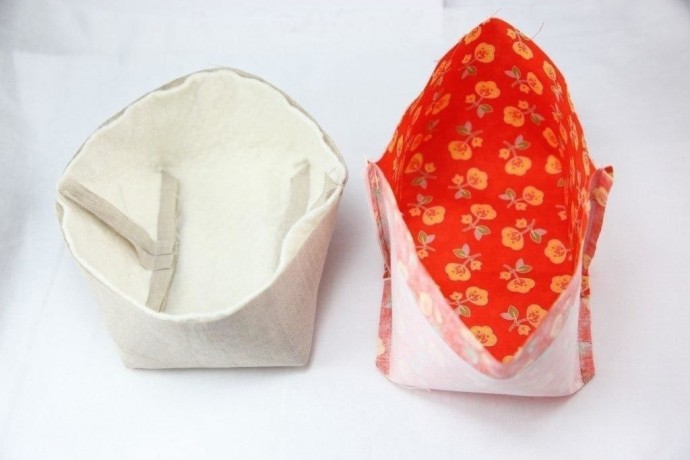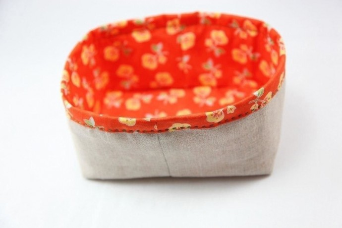 Корзиночки из ткани можно дополнить ручками из экокожи.