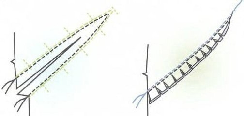 Большинство вытачек просто приутюживают. Но глубокие вытачки на толстых тканях необходимо уменьшить в объеме. Припуск срезают, отступив 13 мм от конца вытачки, затем вытачку разутюживают.