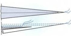 Французская вытачка имеет изогнутую форму и проходит от бокового шва к точке груди. Иногда на листе выкройки середина вытачки вырезана.