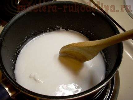 Очень быстро масса загустевает, вначале она будет похожа на творог