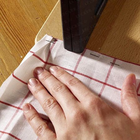 Кармашки для кухонных принадлежностей создаются из ткани и разделочной доски.