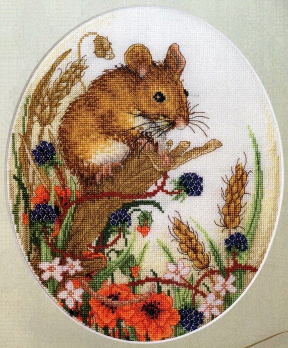 вышиваем мышку на полянке