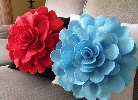 Декор подушки цветком из фетра это объём, помноженный на красоту.