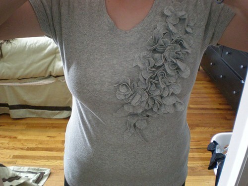 Цветы из трикотажа придадут футболке более дорогой вид.