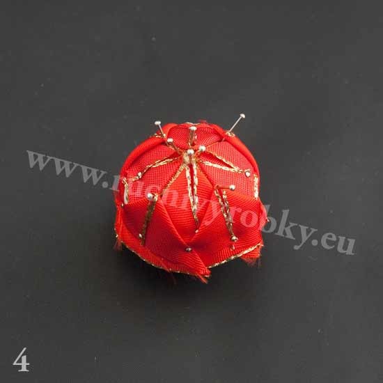Цветок из лентЦветок из лент дополнен бусинами из искусственного жемчуга.