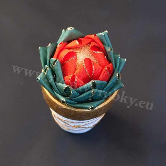 Яркий цветок из лентКрасивый цветок из лент от Ксении Калиновской.Может быть использован как брошка. например.