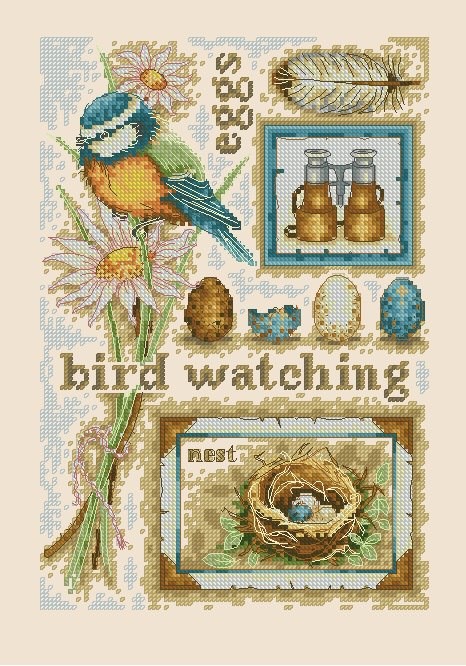 вышивка с птичкой и гнездом