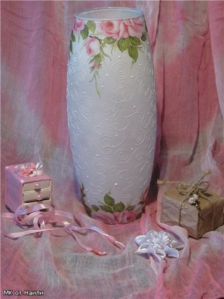 Декупаж вазы своими руками позволяет самую дешевую вазу превратить в произведение искусства.