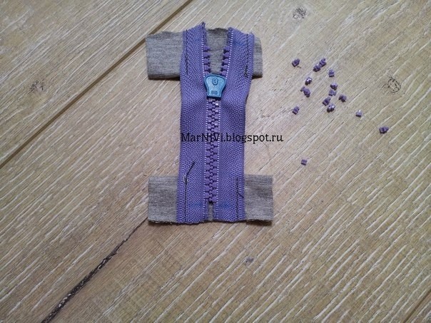 10. Отмеряем длину на молнии. Декоративные вставки на концах молнии я делаю по 1.5 см, они отмечены так же на молнии.