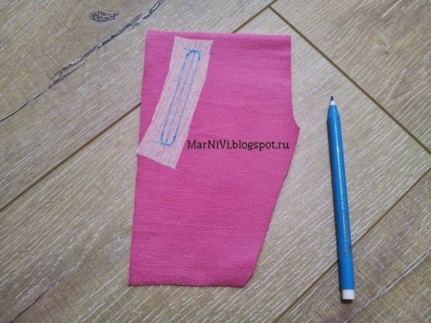 1. Делаю на примере брюк. У брюк и карманов верхняя и боковая части совпадают. Беру все контрастное, чтобы было наглядно))).На основной детали отмечаем расположение кармана.