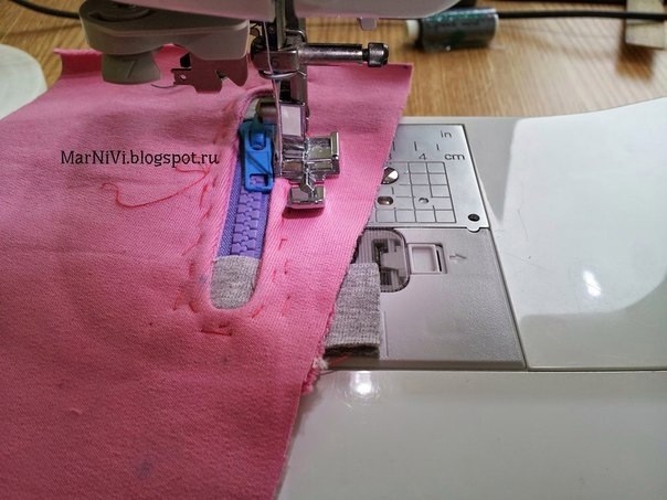 14. Пришиваю по контуру. Лапка уже другая. Вроде называется "для пришивания молний".