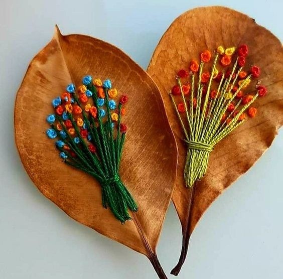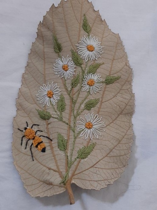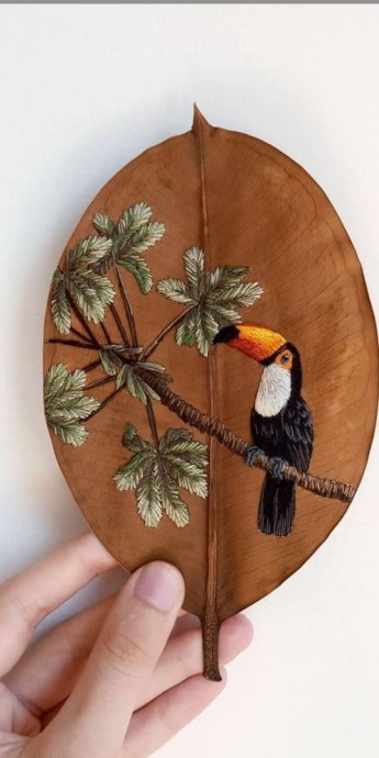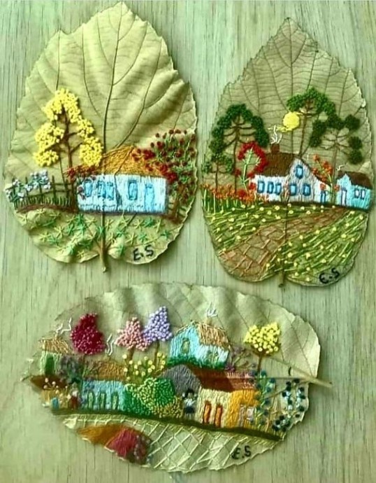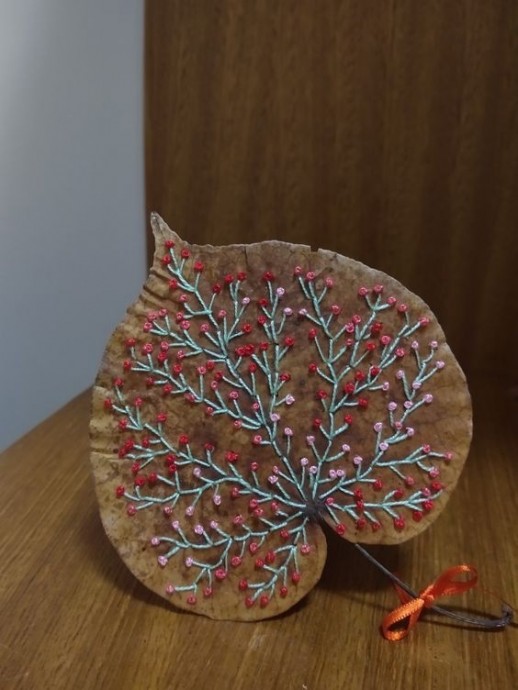Вышивка на листьях для тех, у кого дома вышито уже всё, что можно.