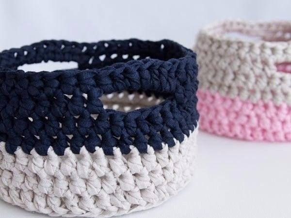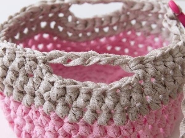 Вяжем корзинку из трикотажных полосок. Мастер-класс