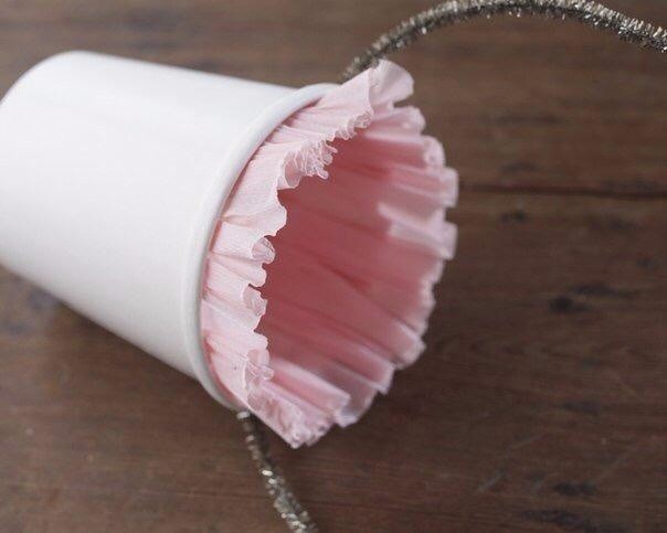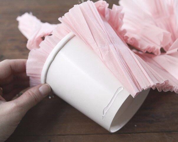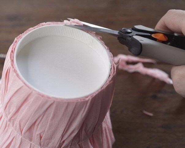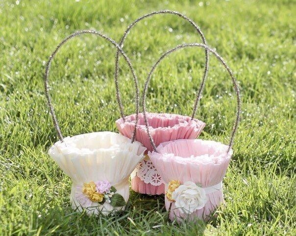 Нежные корзинки можно делать как из тонкой ткани, так и из гофрированной бумаги.