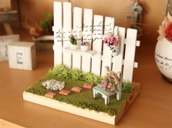 Понятно, что заборчики из деревянных палочек, а миниатюрные цветочки из чего сделаны? Почему нет описания работ??