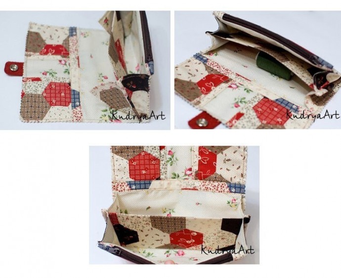 КошелекКошелек может быть сшит вместе с сумкой из ткани и быть с ней в одном стиле.