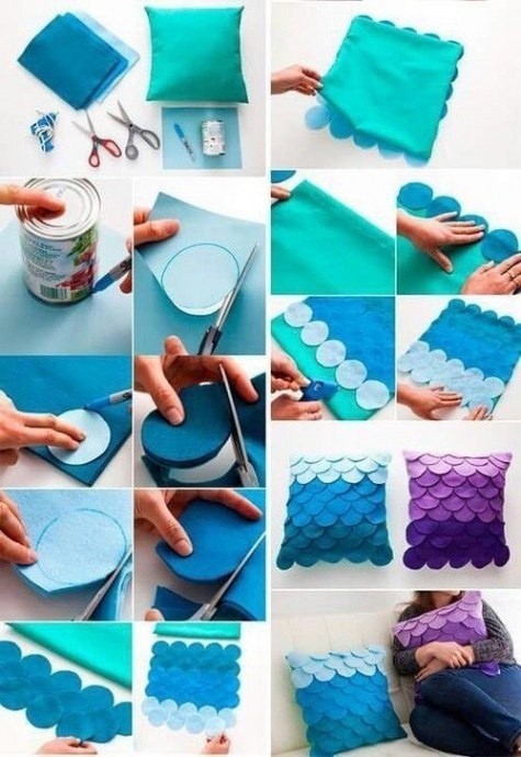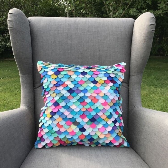 декор подушки фетровыми чешуйками