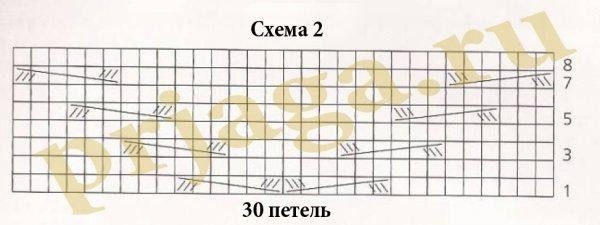 - 6-st rc: 3 п. оставить на вспом. спице за работой, 3 лиц., затем провязать лицевыми 3 п. со вспом. спицы