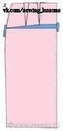 Раздвиньте края горизонтального разреза на участке от линии середины до вертикального разреза на величину требующегося удлинения. Продолжение припуска имеет форму клина. Края вертикального разреза расходятся.
