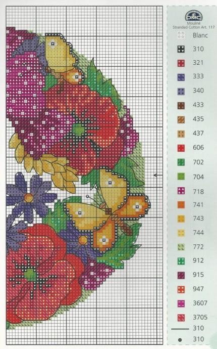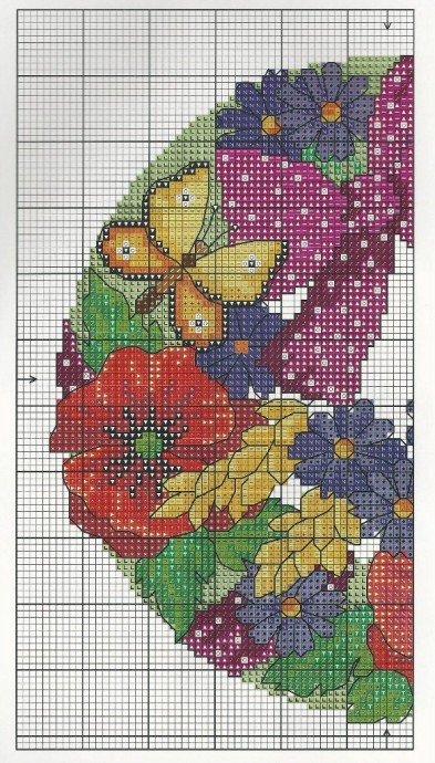 Эти схемы вышивок с цветами можно использовать и как фон циферблата часов.