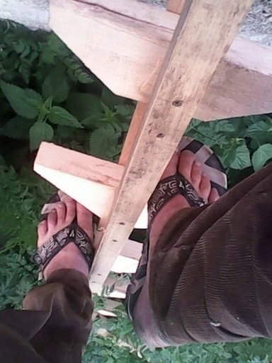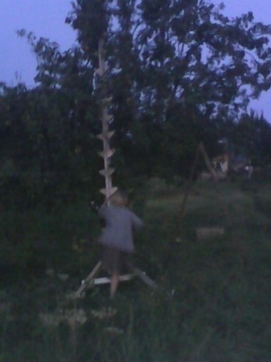 Лёгкая садовая лестница из дерева не занимает много места при хранении.
