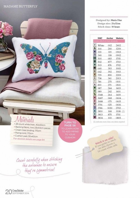 Подушка с вышитой бабочкой