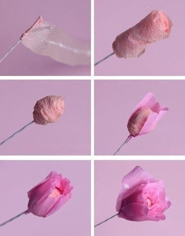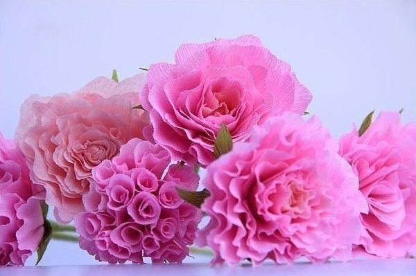 Нежные цветы из гофрированной бумагиСкоро цветы станут дорогими.Уберите этот мастер-класс в копилочки, чтобы воспользоваться им для украшения стола в нужное время.