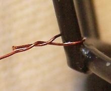 2. Отрезаем необходимый кусок проволоки. Огибаем им одно из ребер подсвечника, соединяем в петлю и закручиваем. Затем заводим конец проволоки в мисочку с бисером и нанизывающим движением набираем нужное количество бисера в несколько приемов.