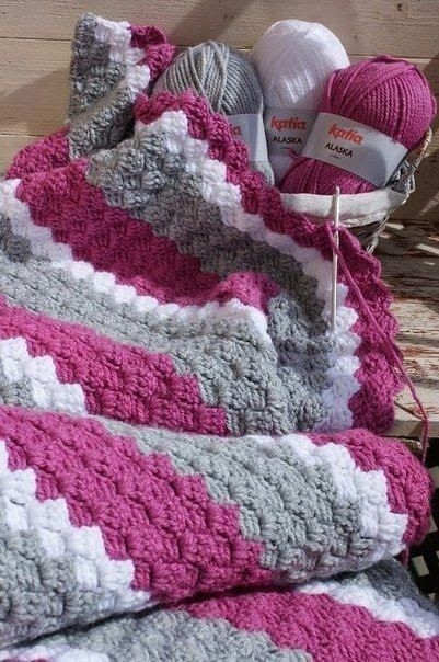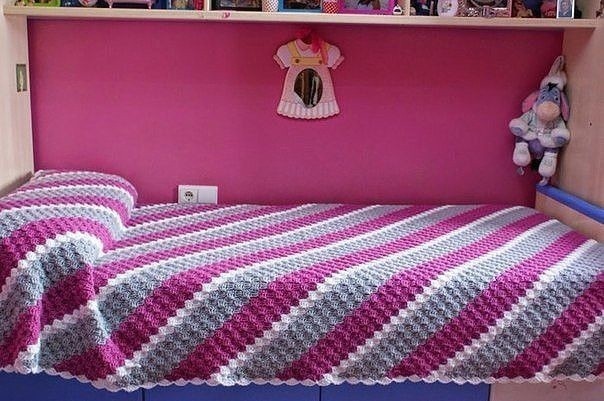 Очень красивый узор для пледа будет смотреться также чудесно на любых крупных вещах.