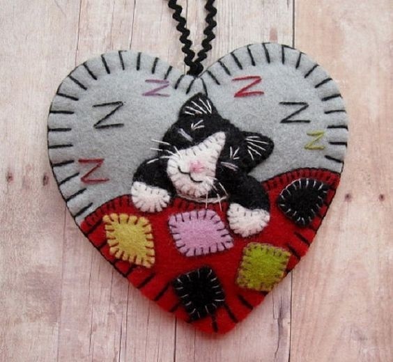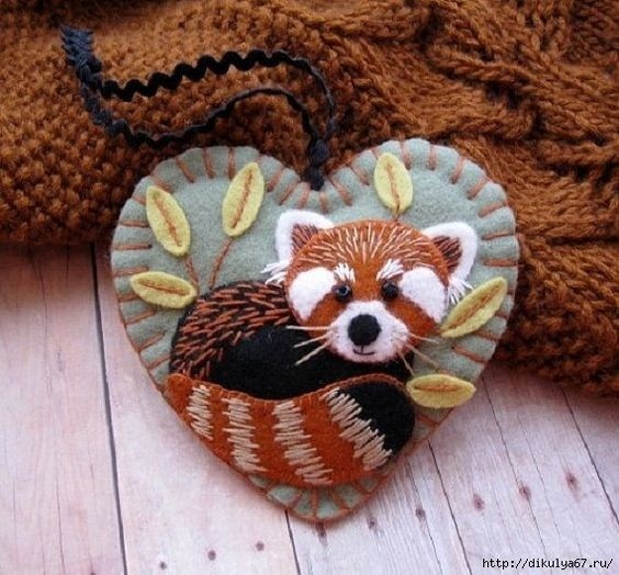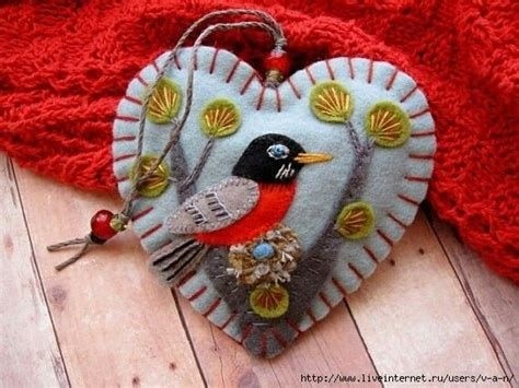 Интересные сердечки выполнены из фетра и расшиты вышивкой и аппликацией.