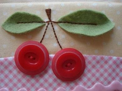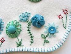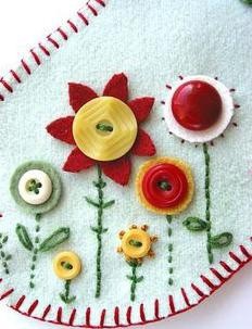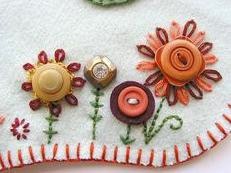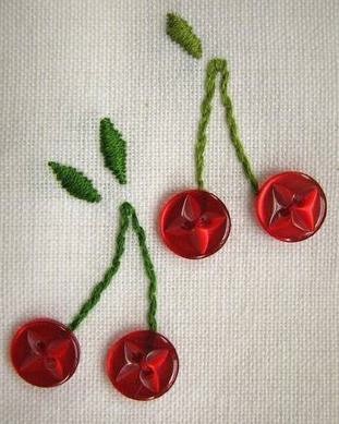 Интересная вышивка с использованием пуговичек разной формы и цветов.