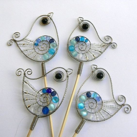 Певчие птички из проволокиПевчие птички из проволоки, дополненные бисером, могут поселиться в ваших цветочных горшках.
