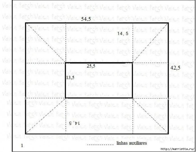 Нам нужно сделать выкройку. Для этого сами создадим шаблон. Чертим на бумаге прямоугольник со сторонами 54,5 и 42,5 см.